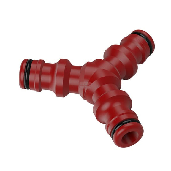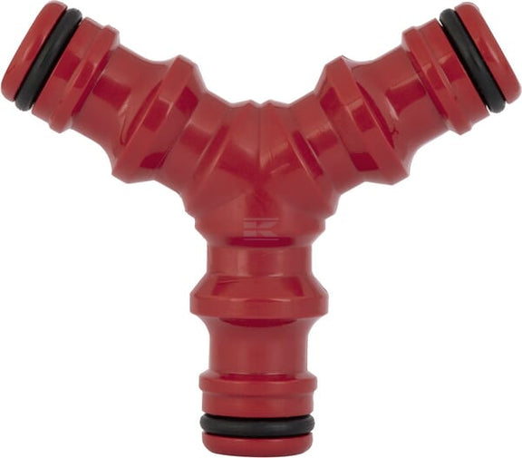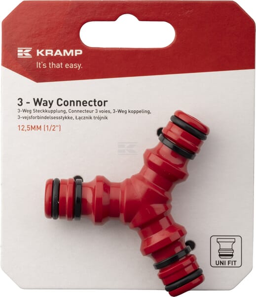 De Kramp 3-weg insteeknippel verbindt slanguiteinden met 1/2" of 3/4" snelkoppelingen. Deze Y-vormige koppeling past op alle vrouwelijke snelkoppelingen van het tuinsysteem en beschikt over mannelijke aansluitingen aan beide zijden. Gemaakt van duurzaam kunststof, ideaal voor watertoepassing in uw tuin. Eenvoudig aan te sluiten voor flexibele slangconfiguraties.